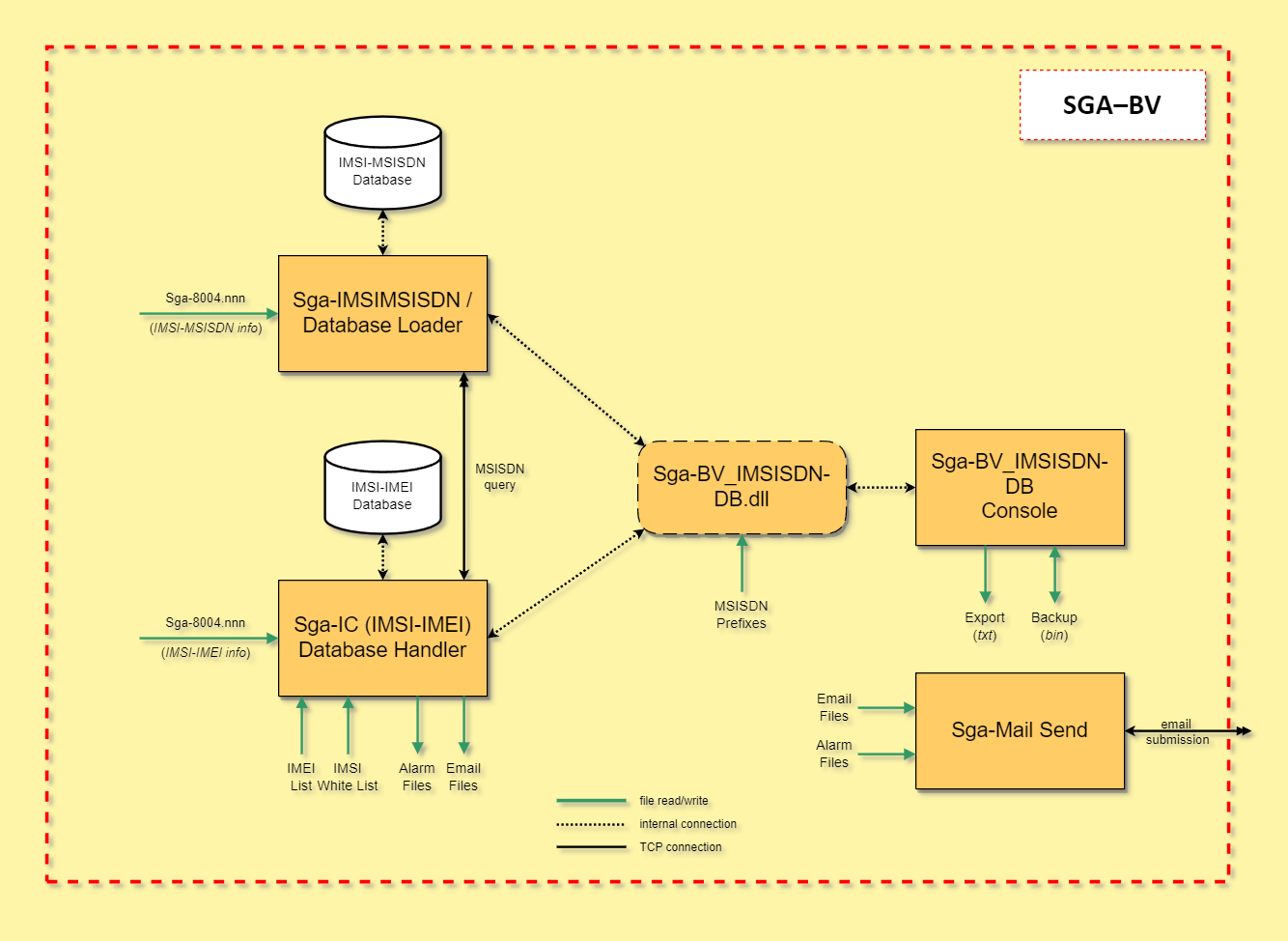 | Sga-BV_IMSISDN-DB.dll | Dynamic link library for the IMSI-MSISDN database | v0.00 | entries of Sga-BV_IMSISDN-DB.ini |
